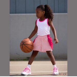 1. Under Armour Size Youth Medium Black Pull on Shorts Pink and Gray Side Stripe