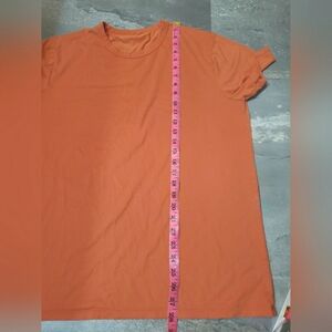 Bundle of 2 Lululemon soft short sleeves shirt. T-shirt. Round collar. One is orange and the second one is a very light grey. No size tag; Both are a size XL according to measurements (see pictures). Excellent condition. No stain, no rip. Non smoking house.