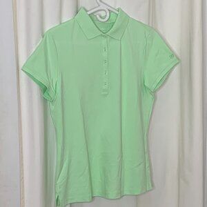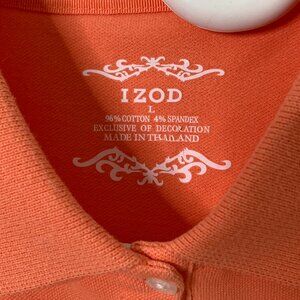 Excellent condition Izod summer polos. 3 in total (1 pink, 1 green and 1 orange). I am selling them together. Each polo has a subtle logo embroidered on its sleeve. If you have any additional questions, please let me know. I live in a smoke free and pet free home.