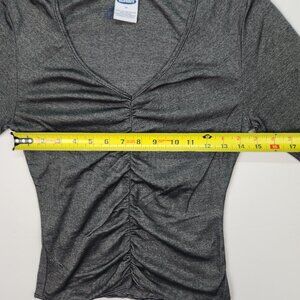 Elevate your casual wardrobe with this set of 3 cropped long sleeve shirts from Old Navy, size M. The red and dark gray tops feature a trendy ruched front design, while the third shirt offers a sleek, classic style. Perfect for everyday wear, these shirts are versatile and comfortable, making them a staple for any casual outfit. Preowned but in like-new condition, they offer a stylish twist on essential basics. Please refer to photos for details.