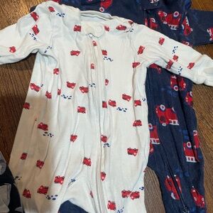Bundle of 4 100% cotton 3 month sleepers Boys Firetrucks, sharks, construction