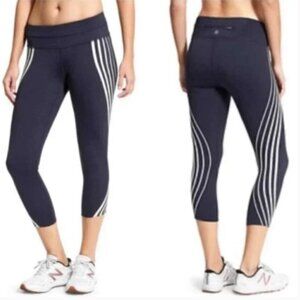 Athleta Navy Blue Gel Sonar Striped Capri Leggings Women's S