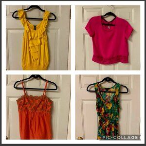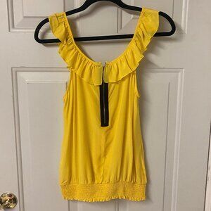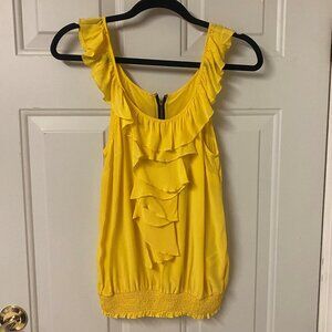 *The yellow top has no brand tag but is 100% silk measures 17.5" inches armpit to armpit and 25.5" inches down the back including the straps