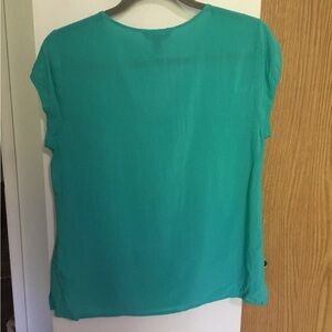 This relaxed blouse from Banana Republic features a vibrant green hue and cap sleeves, offering a boxy silhouette for a comfortable fit. Its lightweight material ensures a breezy feel, perfect for casual outings.