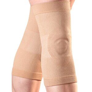 Bamboo knit fabric and contoured silicone knee pads provide comfortable support and protection without the bulk.