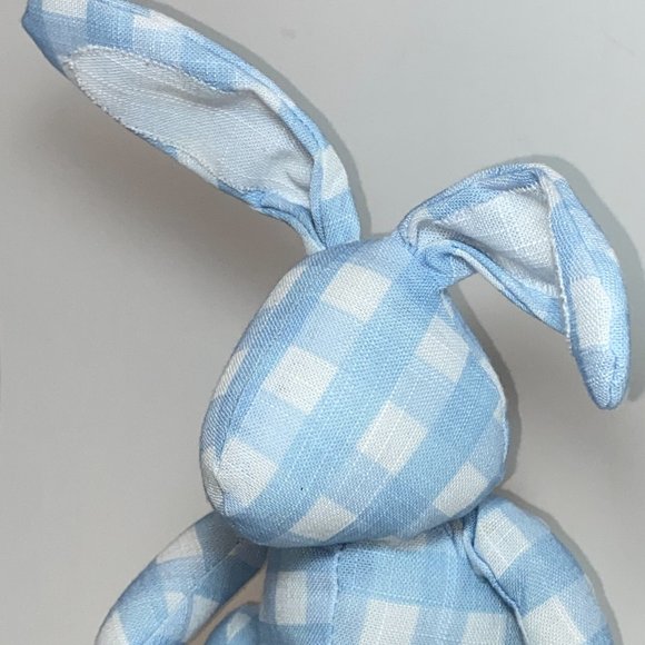 Bunny Rabbit Blue White Checkered Fabric Stuffed Medium Size Plush Baby
