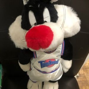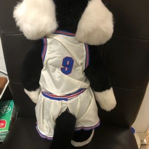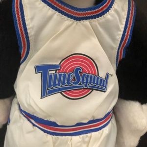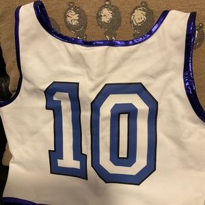Turn heads & Rule the basketball court in the Sassy Bunny Squad Costume for Women! Put on the white crop top with red and blue Bunny Squad logo, white shorts with metallic blue waistband, soft blue wristbands, and fuzzy bunny ear headband and mop the floor with the competition. You'll be everybunny's favorite athlete in this unique uniform! Shoot hoops and shoot for the stars as a marvelous member of the Bunny Squad. All that’s missing is your perfect companion teammate Sylvester the Cat in his own Tune Squad uniform #9 (sold separately, under our toy dept.)