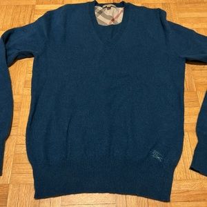 This blue V-neck sweater features a subtle knit texture, offering a classic and versatile look. Made from a comfortable knit fabric, it provides warmth and style for any occasion. The solid color design ensures it pairs effortlessly with various outfits. Stitches need to put together right on the seam under arm