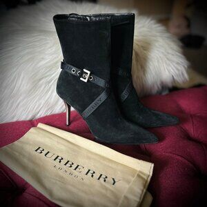 Description: Burberry suede heeled zip up boots