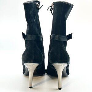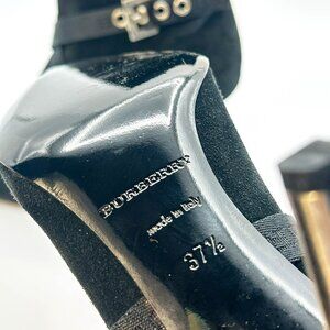 Burberry -Authentic-Black Heeled Boots with Silver Buckle