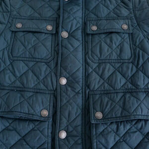 Keep your little one stylish and warm this winter with the Burberry Green Zip-Up Quilted Puffer Jacket, lined with a hidden hoodie. This designer winter jacket, in Size 8Y, perfectly combines fashion and functionality, making it a must-have for your child's cold-weather wardrobe.