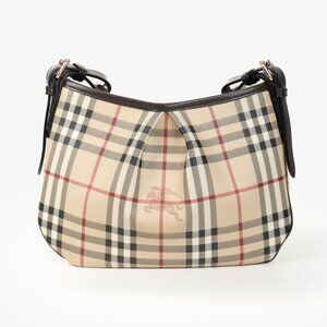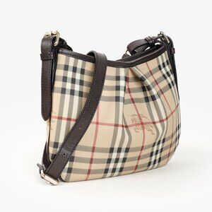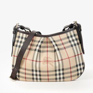 Stylish Burberry crossbody bag. Features classic check pattern. Adjustable brown leather strap. Perfect for everyday use.