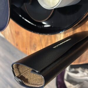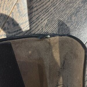 🖤⭐️Chic black leather holder with Burberry logo. Perfect for eyewear protection. Preloved wonky wear hole defect on left side interior wear stain flaws condition photographed. Please review images carefully ( selling As is Same day shipping from smoke free home