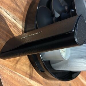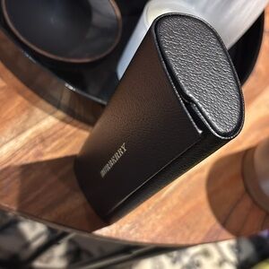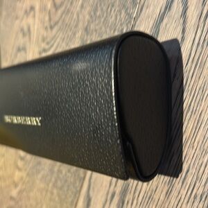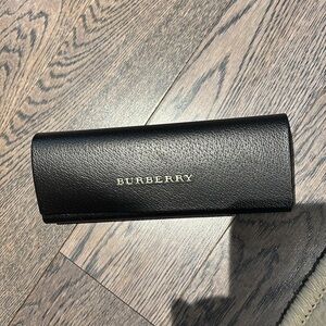 🖤⭐️Chic black leather holder with Burberry logo. Perfect for eyewear protection. Preloved wonky wear hole defect on left side interior wear stain flaws condition photographed. Please review images carefully ( selling As is Same day shipping from smoke free home