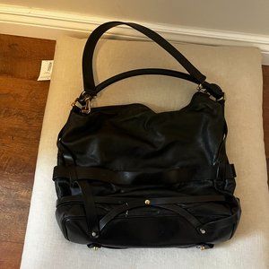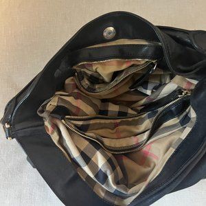 Burberry Black Leather Hobo Bag with Burberry signature pattern on the inside. Excellent deep bag, great for travelling. Can hold a smaller laptop as well.