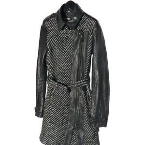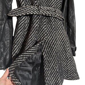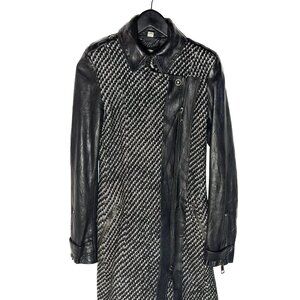 Burberry Black Leather Sleeves Wool Tweed Coat