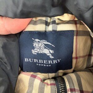 This stylish Burberry puffer jacket is in great used condition, with no major flaws aside from a missing zipper pull on the front. Please see the details below for sizing and additional information: