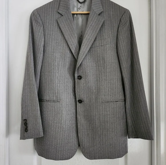 Classic gray pinstripe jacket by Burberry. Excellent condition.100%Wool.