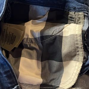 These are in good condition except the button hole has been torn through wear, but still completely functional. The ankle zippers are in shape with a great Burberry detail on the inside hem of the zipper. These have a decent amount of stretch and are comfy.