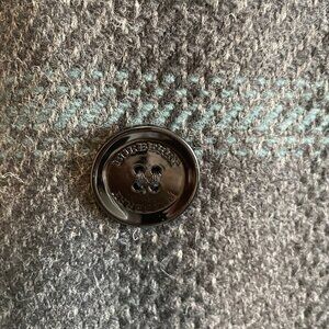 Burberry Brit Double Breasted 100% Lambswool Lined Plaid Coat in Grey Black + Blue