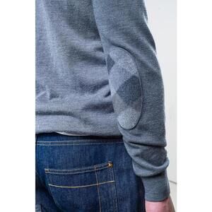 Burberry Brit Grey V-Neck Sweater with Check Elbows