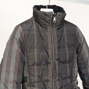 Burberry Brit Grey-Check Reversible Belted Goose Down Puffer Jacket
