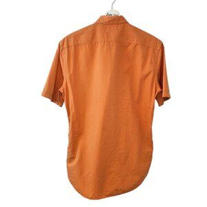Burberry Brit Mens Short Sleeve Button Up Shirt, Orange, Cotton, Size Small