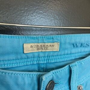 Burberry Brit size 27 jeans showcase a vibrant blue color and a stylish ankle-length cut, offering a modern vibe- these are super bright and fun and classic Burberry Lux