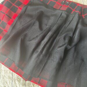 Beautiful red tartan skirt by Burberry Brit. Burberry marked buttons and hardware. 100% wool. Black lining. A perfect fall look with a sweater and tights.
