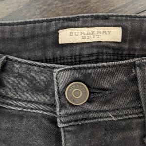 Grey wash, tapered skinny jean from Burberry Brit Jean collection! They have a label for Burberry Brit on the back of the jeans and detailed pockets, with the checkered print pockets on the interior.