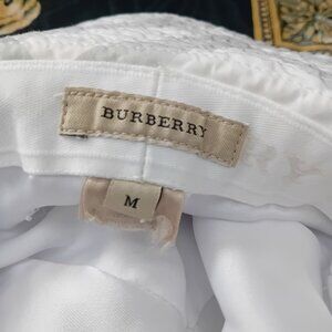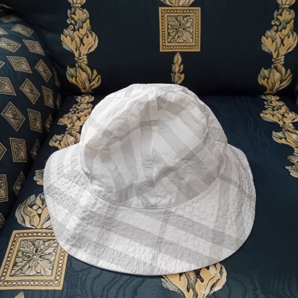 There are about 2 light bleach stains as shown in pictures, but because the hat is already so light it matches very well.