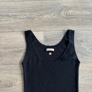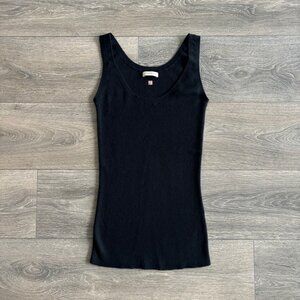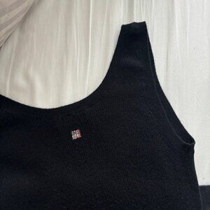 This black cashmere tank top offers a sleek and modern fit, perfect for layering or wearing on its own. Its versatile design makes it a staple piece for any wardrobe, providing comfort and style for various occasions.