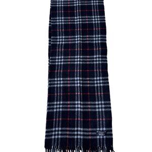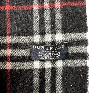 Stay warm and elegant with the classic Burberry London Check Scarf. Crafted from 100% lambswool in England, this unisex black scarf features the timeless Nova check pattern, blending sophistication with cozy comfort. Measuring a length of 72 inches excluding fringe and 12 inches wide, it’s a versatile accessory for fall and winter. Dry clean only. This multifunctional neck warmer is both practical and luxurious, making it a standout piece for any wardrobe.
