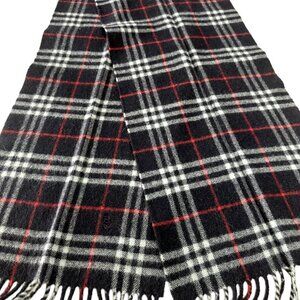 Burberry Classic Check Scarf Black 100% Lambswool Unisex Scarf Made In England