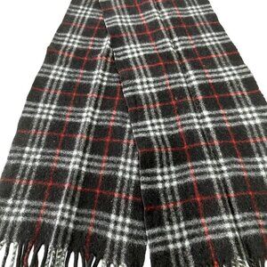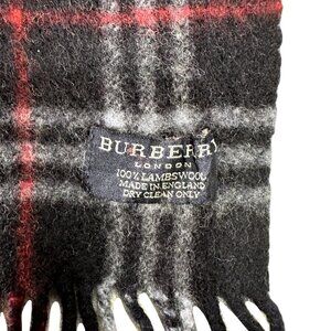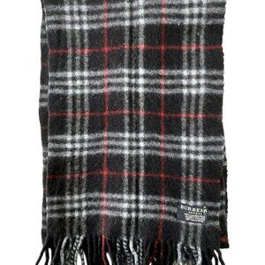 Stay warm and elegant with the classic Burberry London Check Scarf. Crafted from 100% lambswool in England, this unisex black scarf features the timeless Nova check pattern, blending sophistication with cozy comfort. Measuring a length of 54 inches excluding fringe and 9 inches wide, it’s a versatile accessory for fall and winter. Dry clean only. This multifunctional neck warmer is both practical and luxurious, making it a standout piece for any wardrobe.
