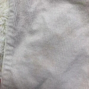 Pants do have a faint stain on the right knee (see photos). Someone who knows what they’re doing would probably be able to get it out. However, it’s not too noticeable. In otherwise great pre-owned condition.
