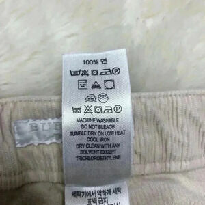 Pants do have a faint stain on the right knee (see photos).  Someone who knows what they’re doing would probably be able to get it out.  However, it’s not too noticeable.  In otherwise great pre-owned condition.