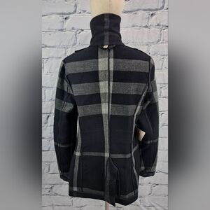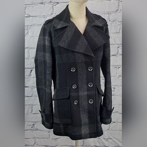 Burberry Double Breasted Pea Coat Winter Jacket Wool Check Plaid Plus Sz 14 US
