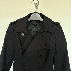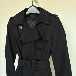 Burberry Double-Breasted Belted-Waist Black Trench Coat Size 0