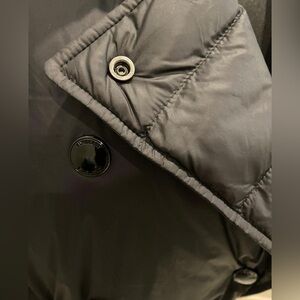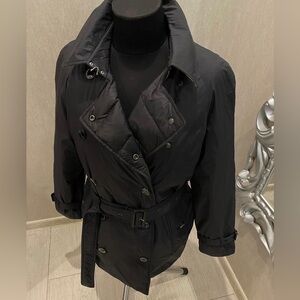 Burberry black Down-filled trench coat gray, size small, belted, trendy, comfortable thing. Great for fall or warm winter wear. Pre loved, in perfect condition.