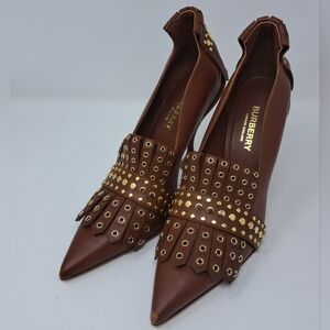 Burberry Goodall 105 Kiltie Fringe Leather Point Toe Pumps Heels 8 US 38 EU