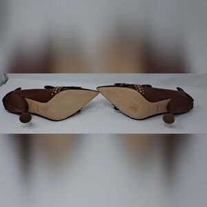 Model: Goodall 105 Kiltie Fringe Leather Point Toe Pumps with Gold studs