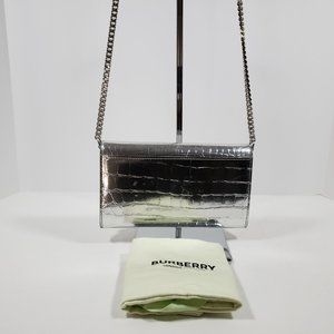 Burberry Hannah Wallet on Chain Crocodile Embossed Leather - Metallic Silver