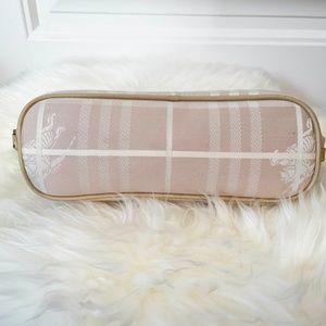 NEW PRICE! Rock bottom - I've gone as low as I possibly can :) This AUTHENTIC Burberry Haymarket Check Baguette Bag is made from canvas with leather details and zipper closure. Measures approximately 9 inches by 4 inches. In very good vintage condition: inside is clean and overall bag is in good shape. However please note the following: small loose stitching on bag face (see picture), two marks on opposing bag face (see picture) and frayed/loose stitching on leather handle (visible in first picture). COMES WITH AUTHENTICATION CERTIFICATE.