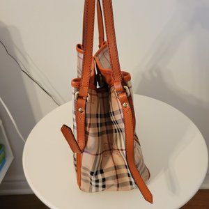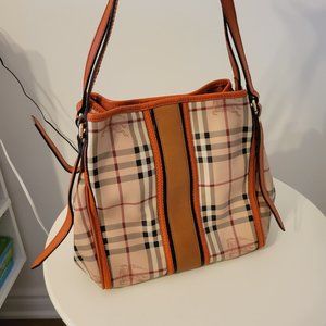 The Burberry Haymarket Check Canterbury Tote in Orange. Waterproof canvas in size 25*25.5*17. Excellent condition, barely used. Don't have the exterior bag that came with it.