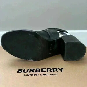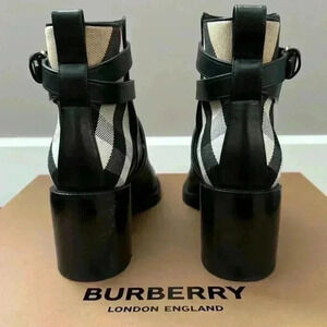 Italian-made heeled leather ankle boots with contrasting panels in House check cotton twill. The design is finished with equestrian-inspired buckled straps.