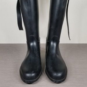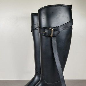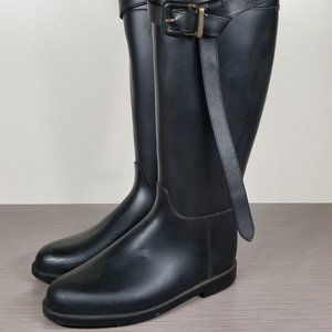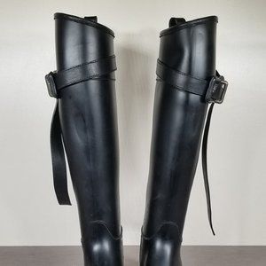 Burberry Knee High Belted Equestrian Rain Boots, Black, Womens Size 5 US / 35