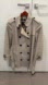 Stylish Burberry trench coat in light tan. Features classic black buttons and belt. Timeless design for versatile wear.