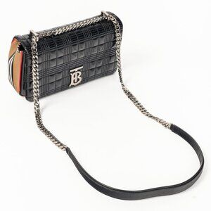 Burberry Lola Small Black Quilted Leather Icon-Stripe Shoulder Bag