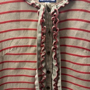 Burberry Blue Label piece in a linen-cotton blend with bold red stripes.